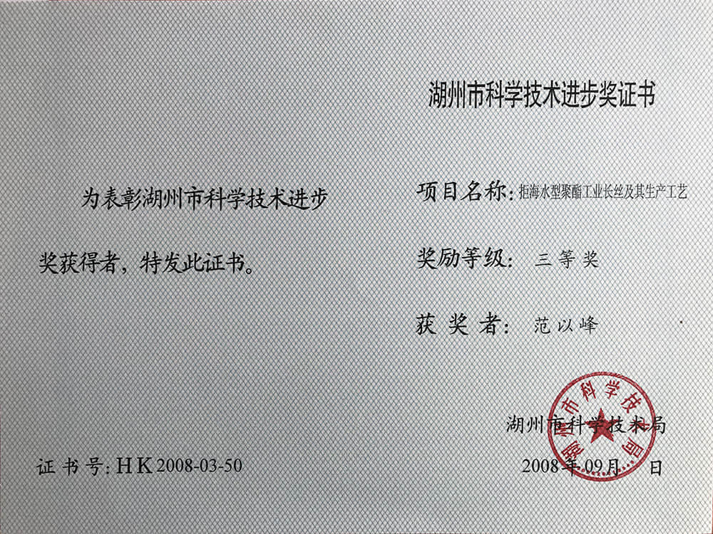 2008湖州市科技進(jìn)步獎三等獎-范以峰