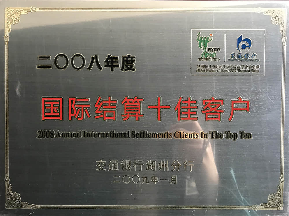 2008年度國際結(jié)算十佳客戶(交行)